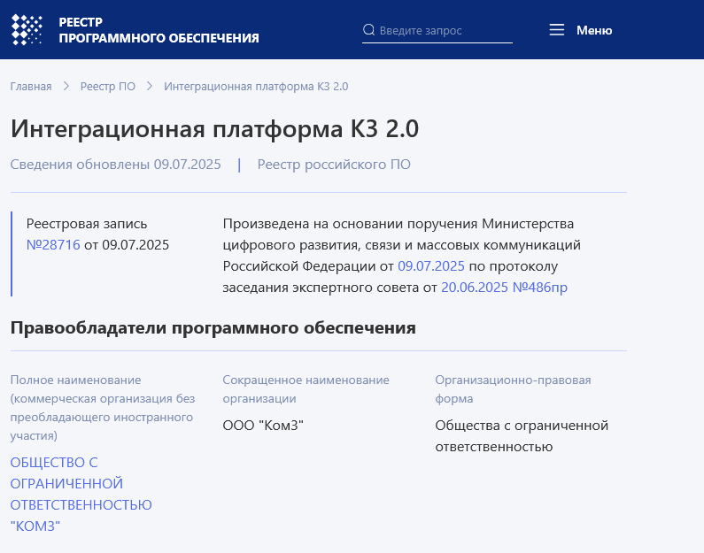 Интеграционная платформа com3 ESB включена в реестр российского ПО.